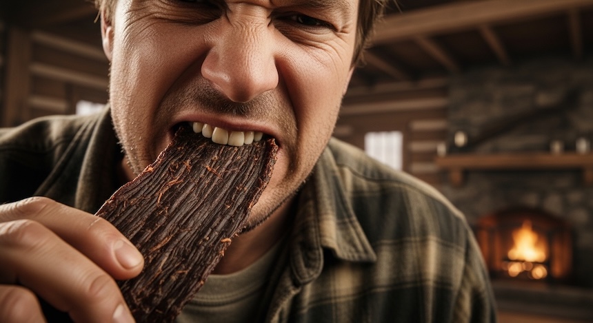 육포는 질기고 딱딱하다. 물론 제품별 편차가 크긴 하지만.