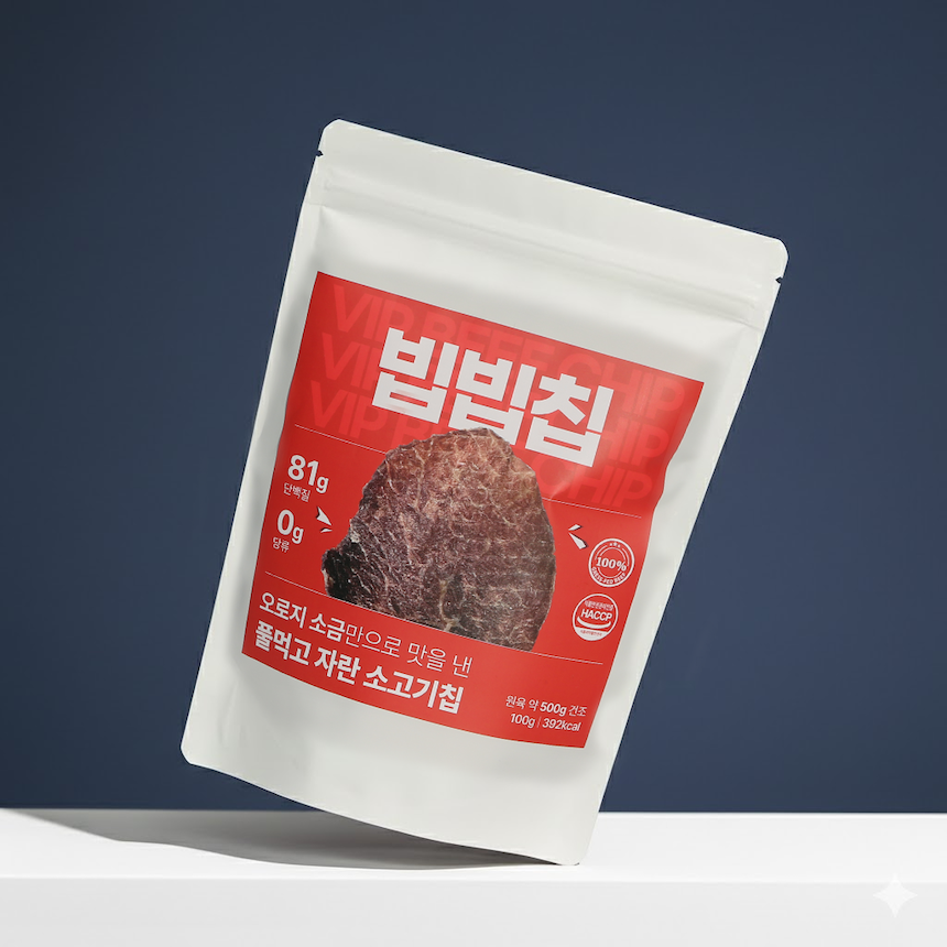 그래서 육포의 단점을 잡은 진짜 영양 간식이 나왔다. 이름하여 소고기칩, 빕빕칩이다.