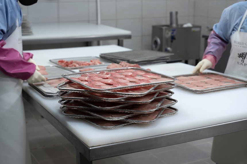 소고기와 소금. 원재료 구성이 워낙 단출하기에 단순히 얇게 썰어서 말리면 될 거라고 생각하기 쉽다. 하지만 이 공정이 간단치 않다. 소고기 부위 선택부터, 해동, 손질, 염지, 그리고 건조 온도와 시간까지 빕빕칩만의 노하우가 녹아있다.