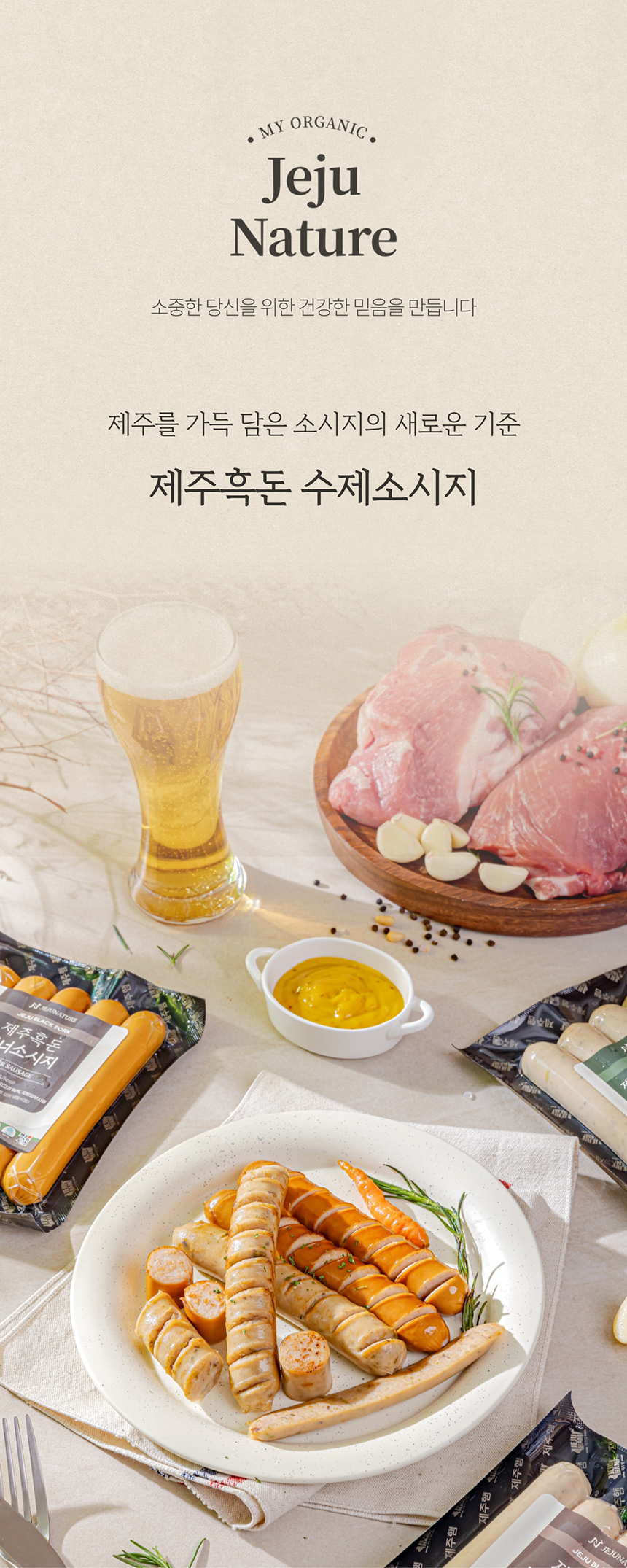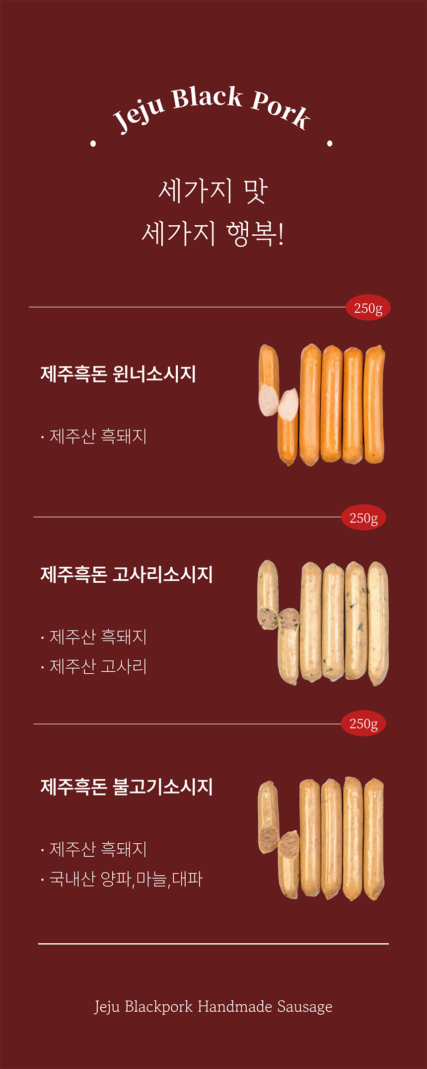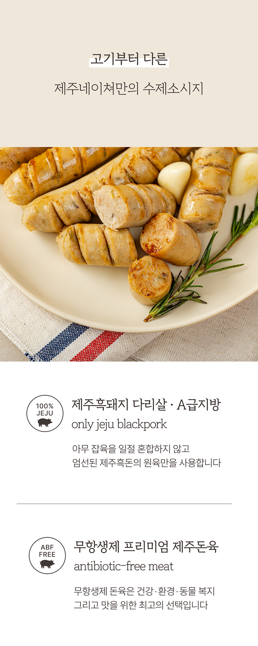 오직 제주산 흑돼지의 뒷다리 살로만 만든 소시지