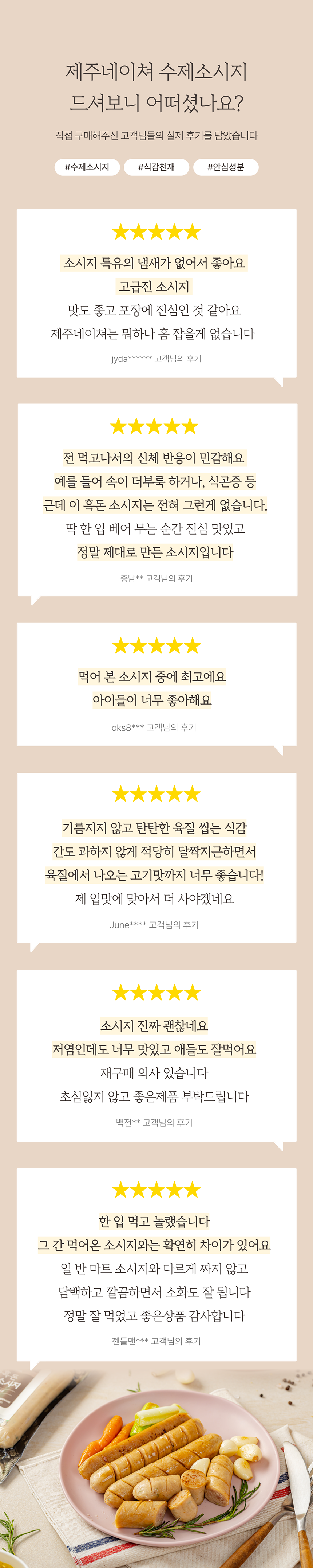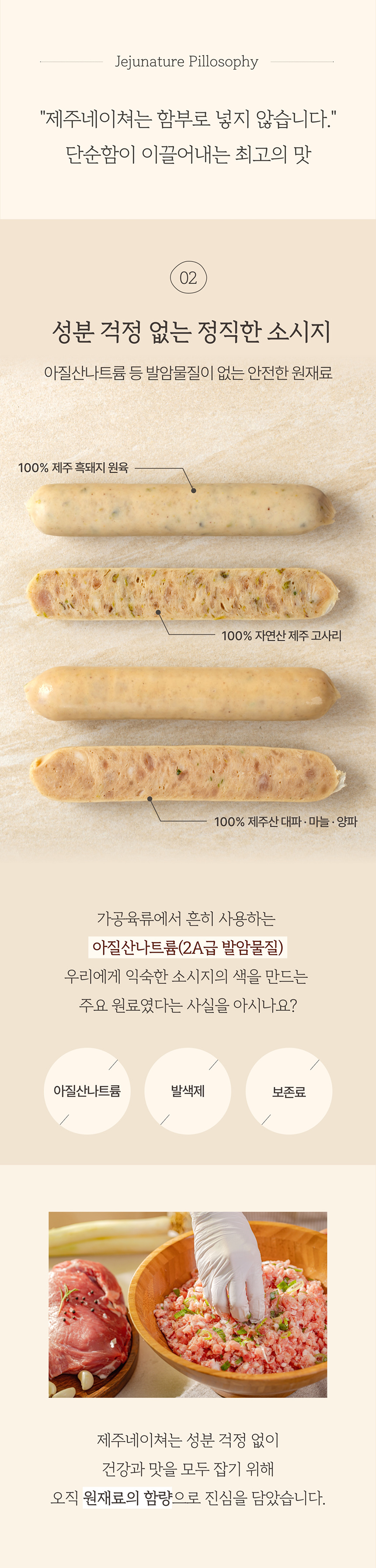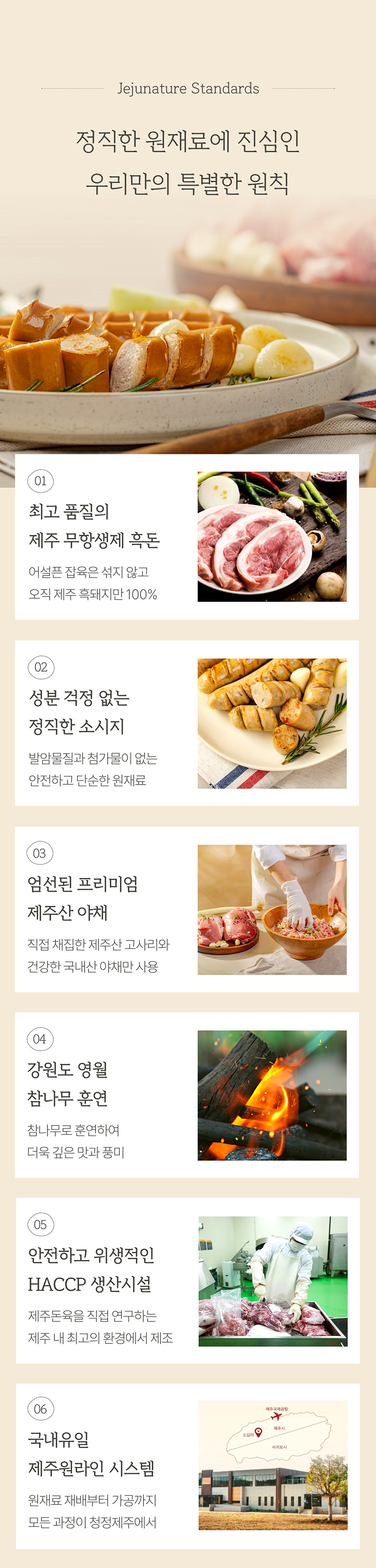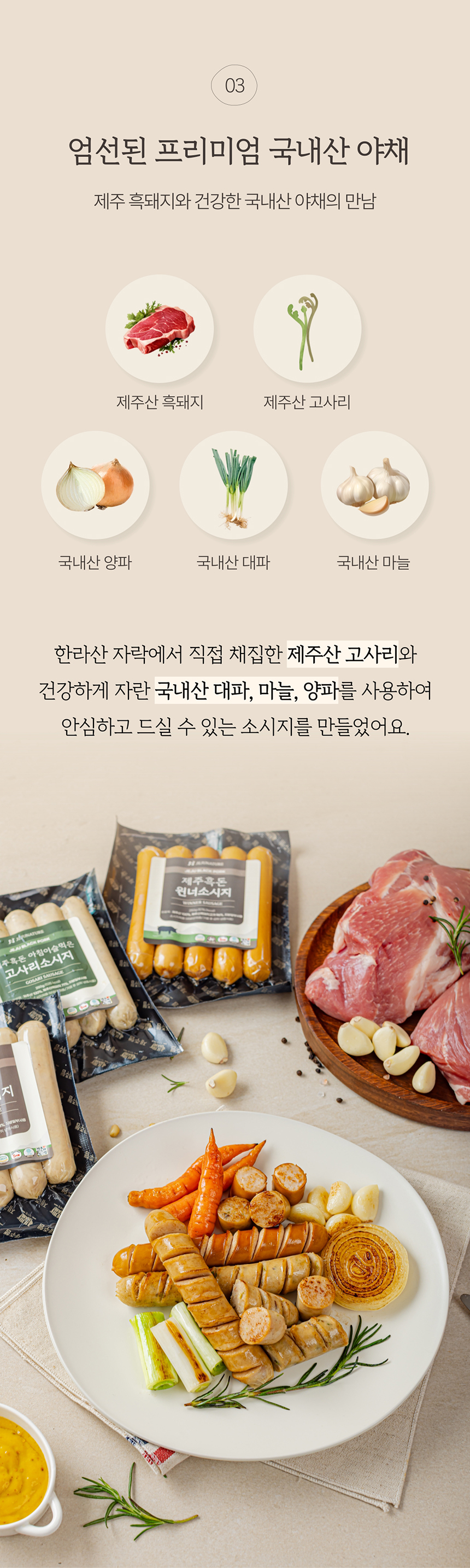 오직 제주산 흑돼지의 뒷다리 살로만 만든 소시지