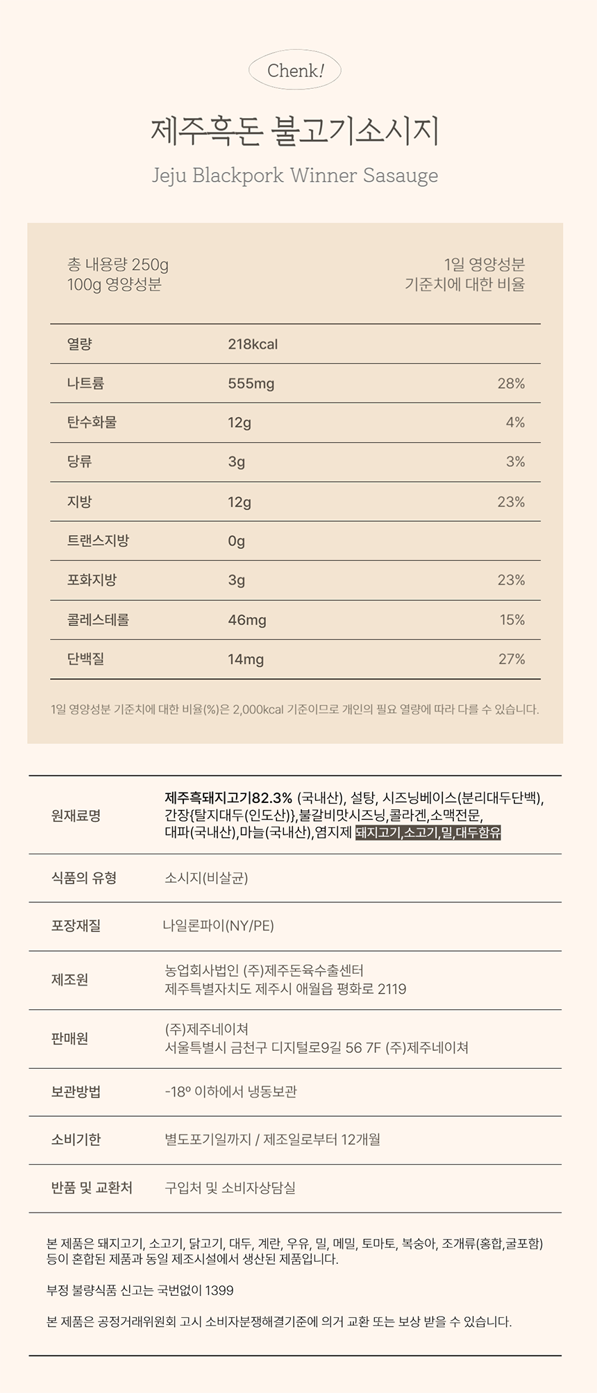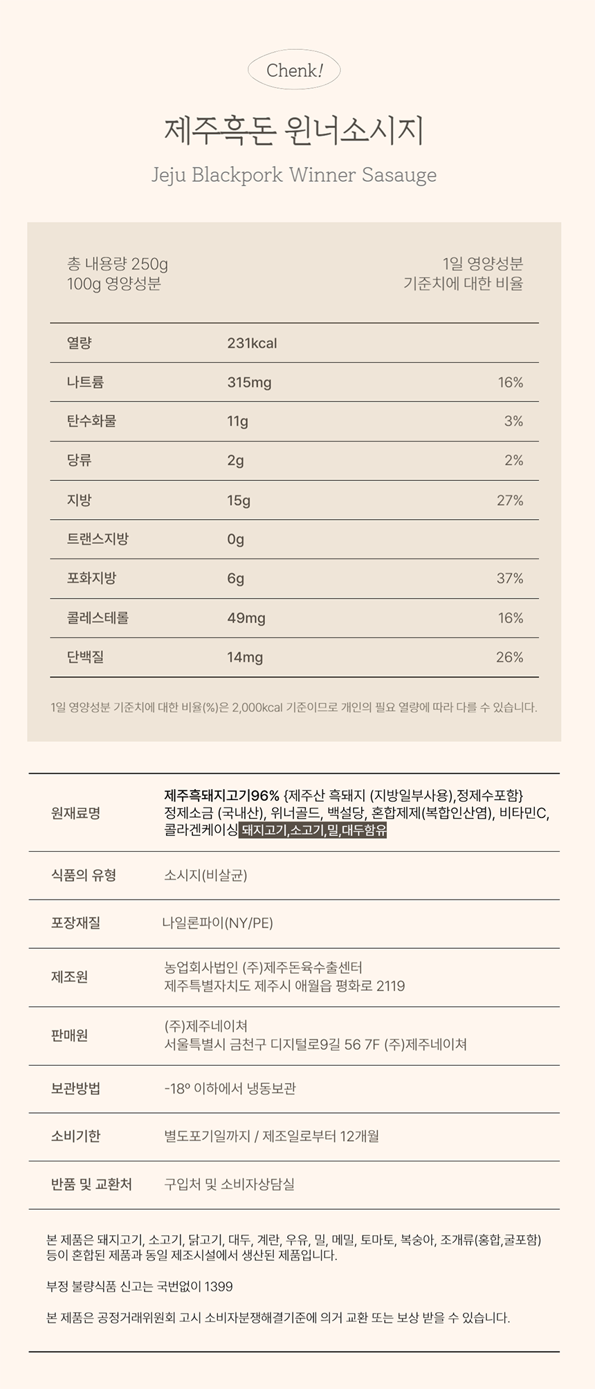 제주흑돈 소시지 뒷면을 보면…