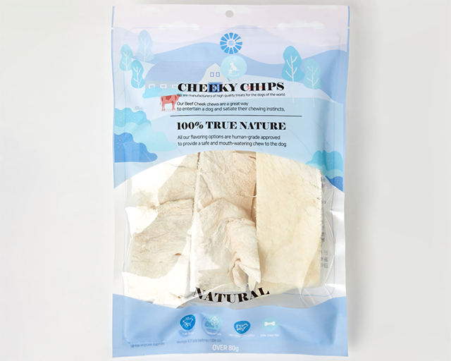 소 뺨가죽은 다른 부위에 비해 콜라겐 함량이 많아 쫄깃하면서도 부드러운 식감을 가지고 있다. 단일 원료 사용으로 소화에도 장점이 있다.