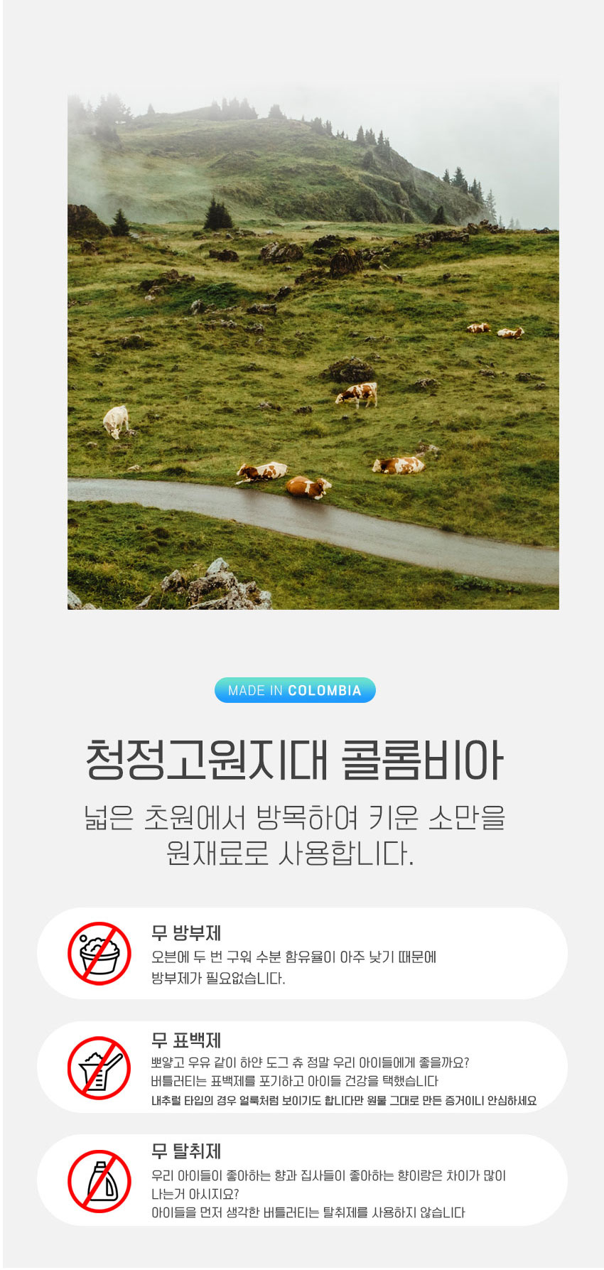 버틀러티 제품은 해발 3000미터 이상의 콜롬비아 청정 고원지대에서 방목하여 키운 소의 뺨 가죽만을 사용한다.
