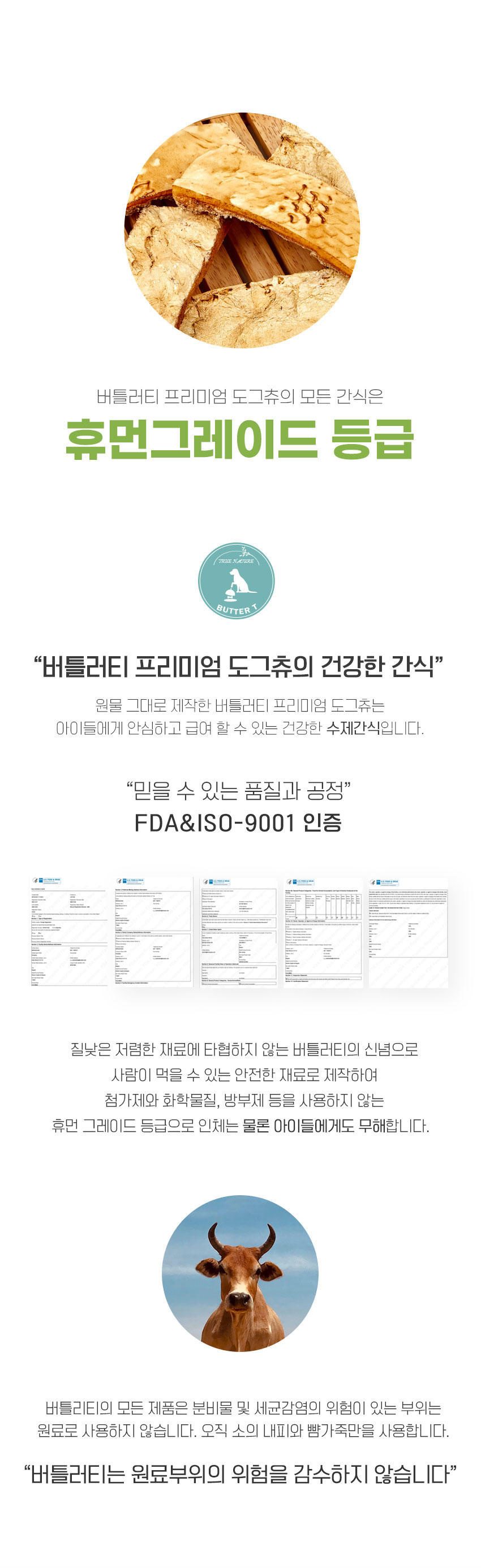 제품에 사용되는 모든 향료와 색소는 휴먼 그레이드 급 이상만을 사용하니 혹시나 걱정되신다면 먼저 드셔보셔도 된다. 다만 간식 자체에 대한 공식 인증 제도가 있는 것은 아니라 추천드리진 않는다.