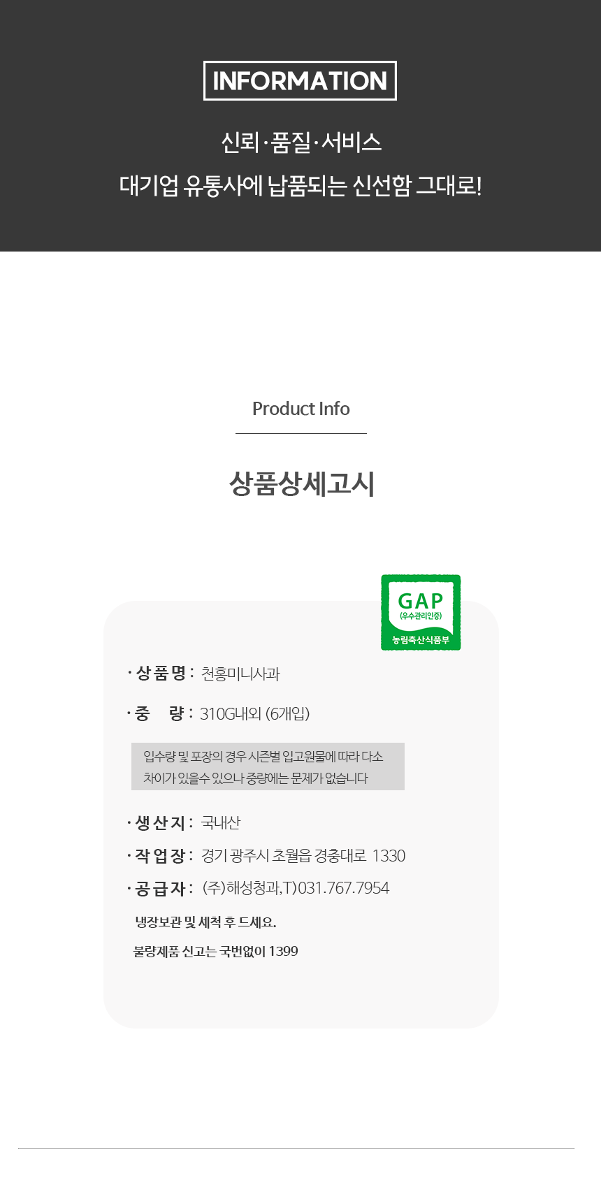 무엇보다도 이 작업장을 직접 찾아가본 이유는 단순히 전국 과수원에서 공급 받는 것을 넘어 GAP 인증 작업장이기 때문이었다.