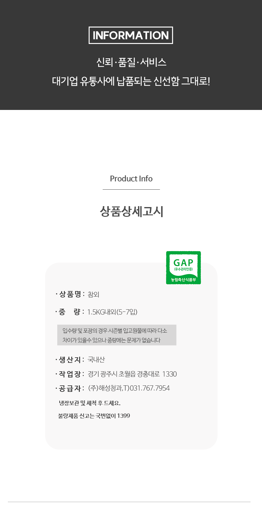 계약한 작업장은 경기도 광주에 위치한 해성청과다.