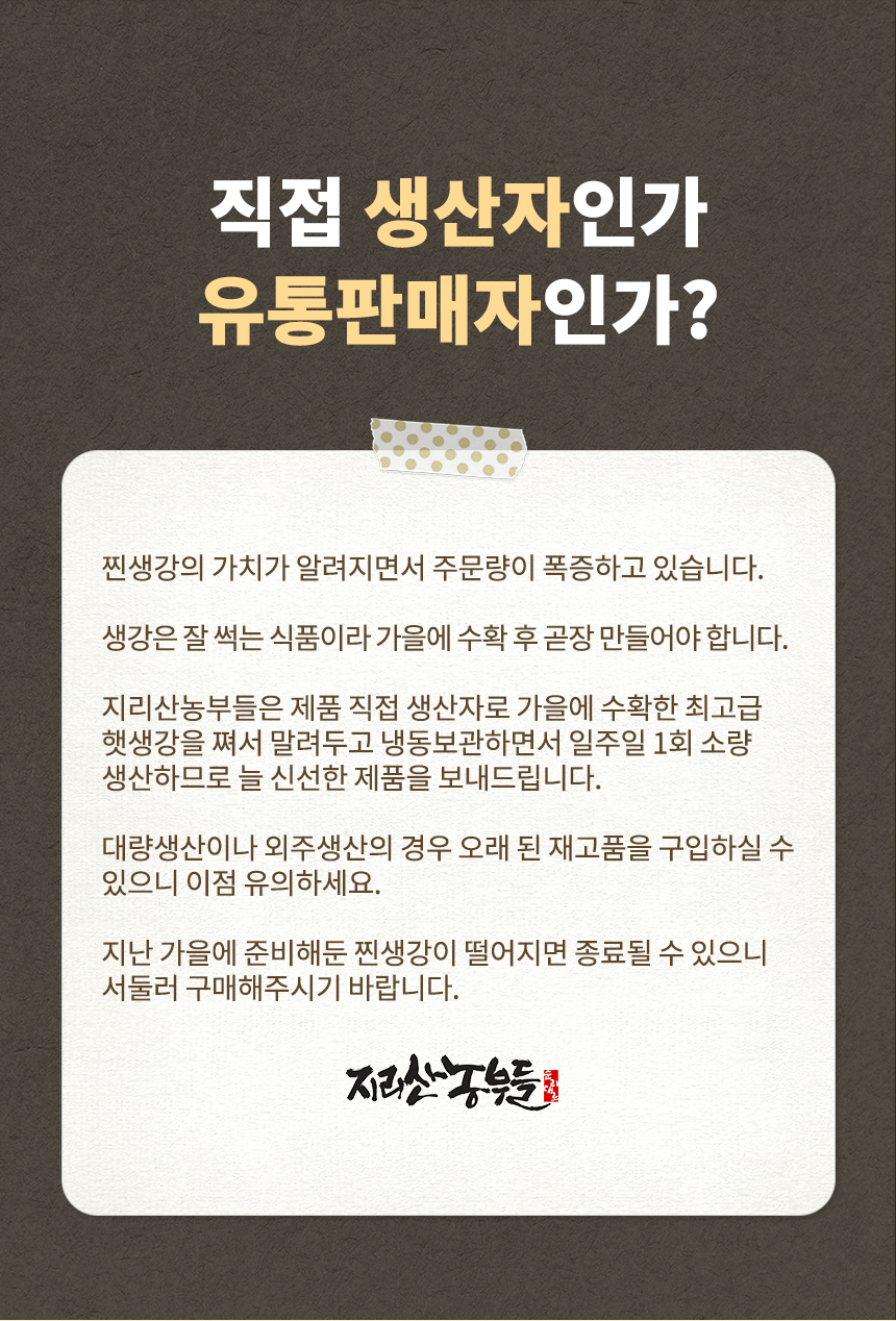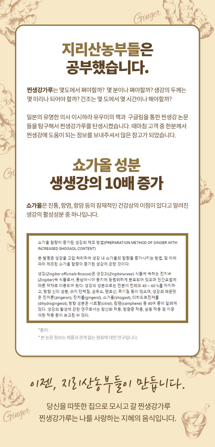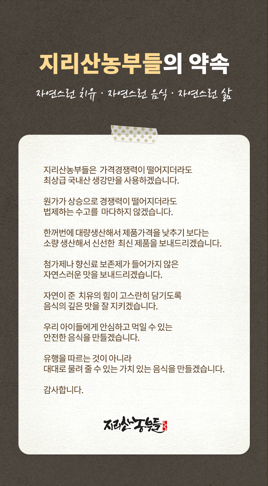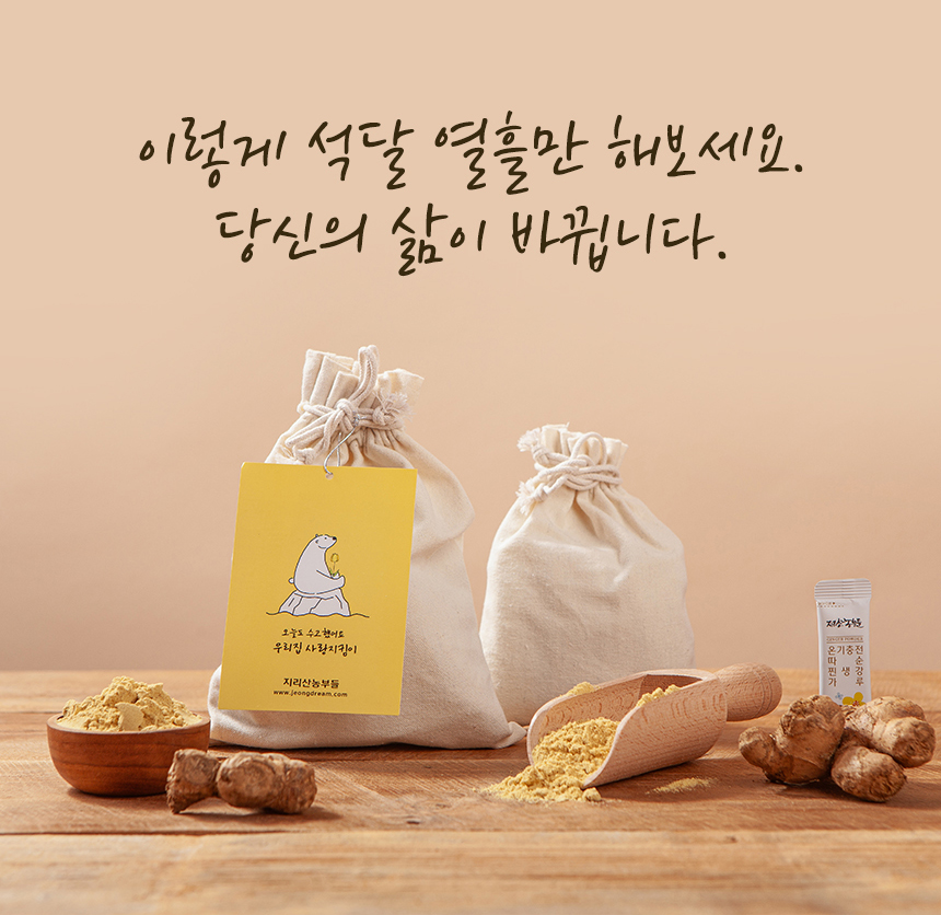 서울에서 차를 타고 5시간 정도 달리면 생강청을 만드는 정드림-지리산 농부들이 나온다. 더 정확히 설명하자면 전라북도 남원시 인월면, 그러니깐 지리산이다.