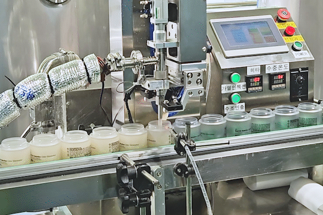 파이프를 통해 원료가 이동해 센서에 맞춰 자동으로 충진된다.