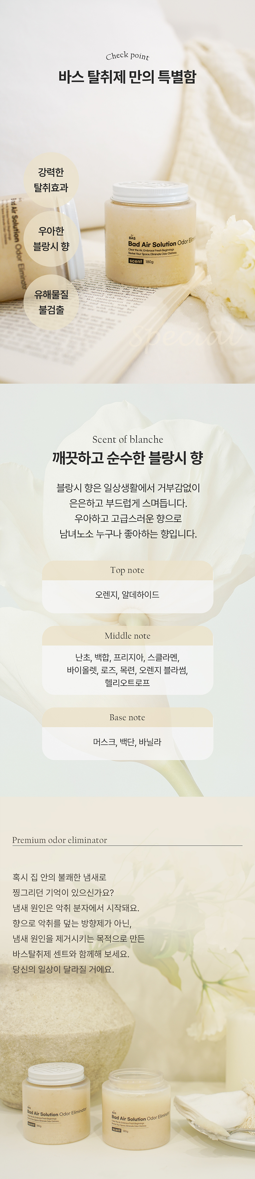 평소 바스 제품을 잘 사용하는 분 혹은 궁금하셨던 분들에게 여전한 탈취 기능과 더 고급스러운 향기를 제공하는 바스 센트를 추천드린다.