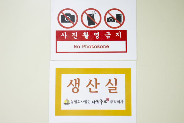 해썹 인증 공장답게 안전 수칙이 벽 한쪽을 차지하고 있다.
