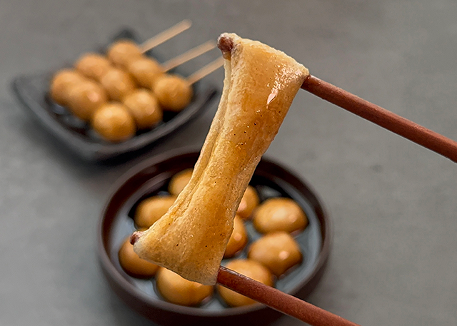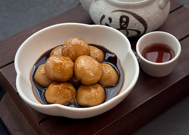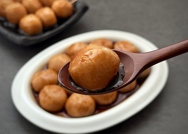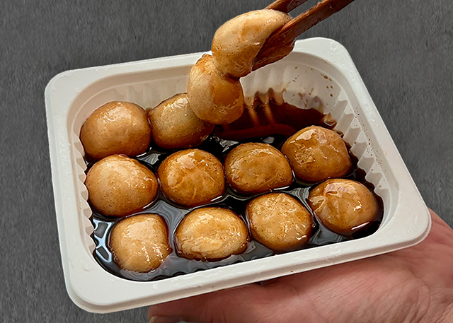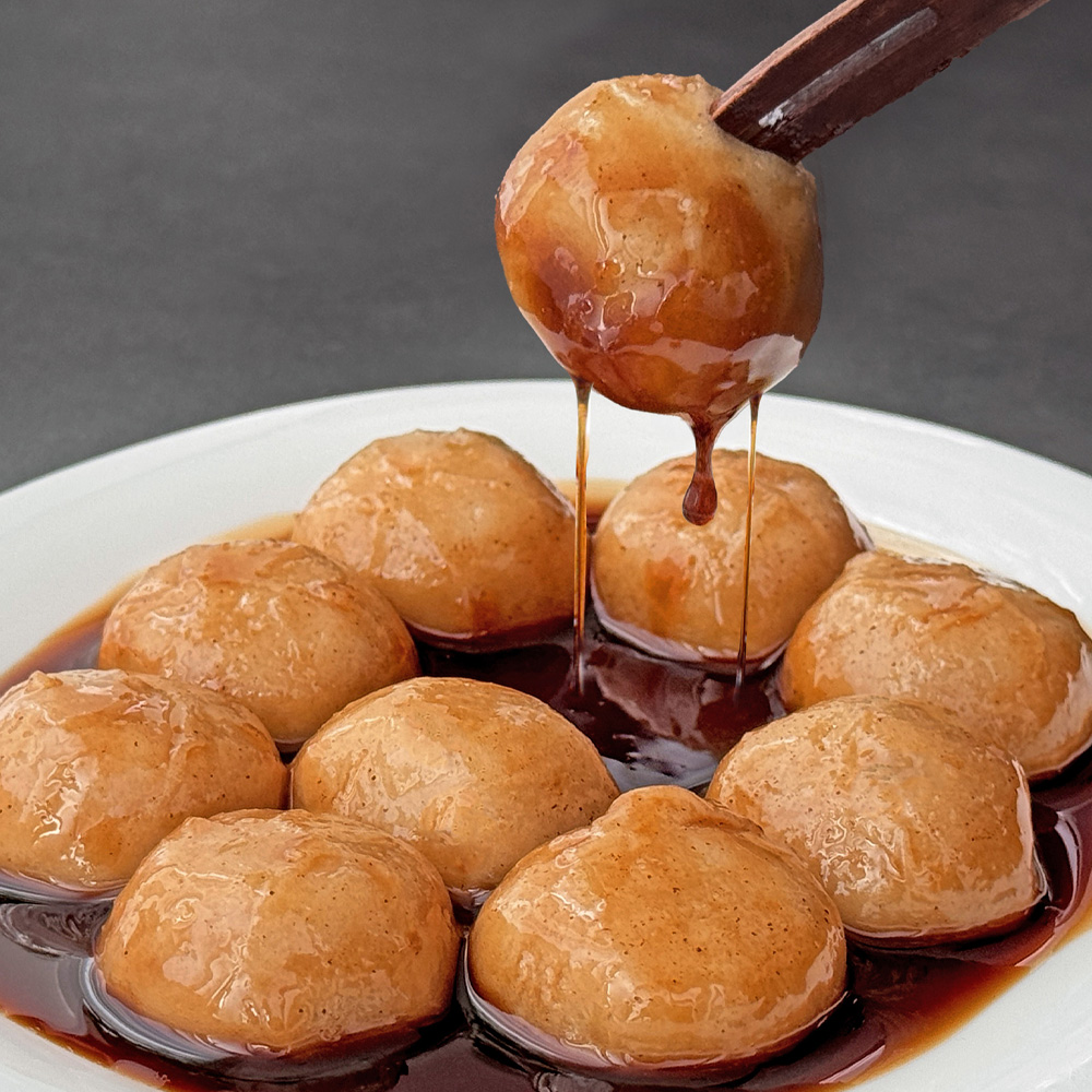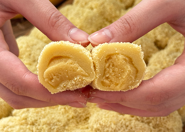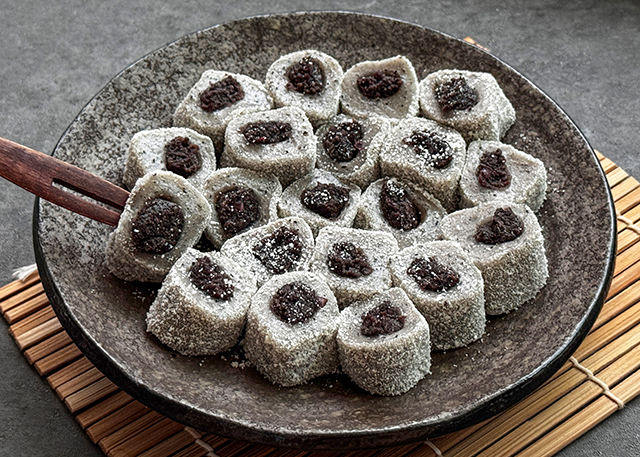 떡은 찹쌀떡이기 때문에 일반적인 꿀떡보다 더 쫀득한 식감을 가지고 있다.
