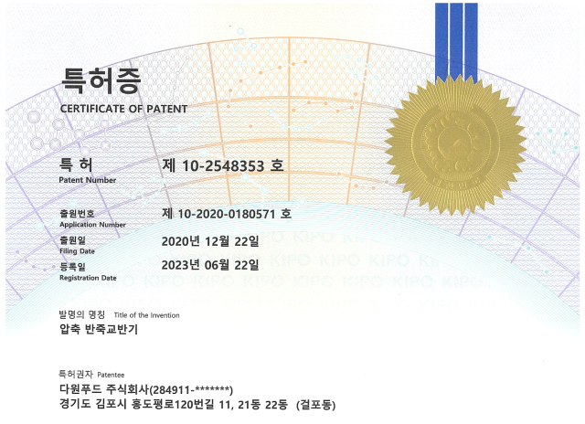 엄마표요리의 떡을 만드는 다원푸드는 무려 떡 반죽만을 위한 기계를 개발해 특허까지 가지고 있다.