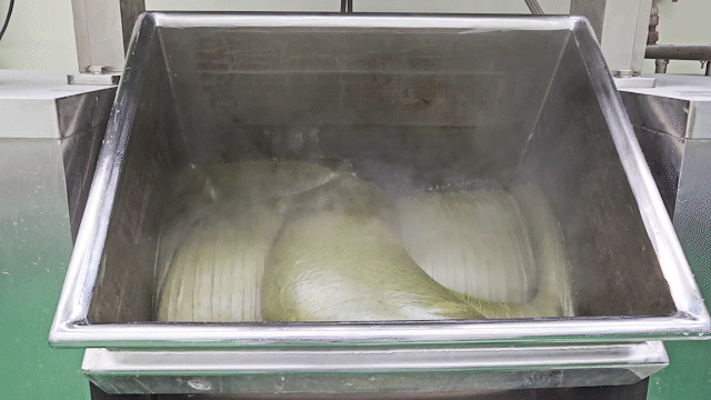 복수의 교반날개가 반죽을 강하게 휘저어줌과 동시에 내부에 압축 공기를 불어넣어 압력을 높인다. 그러면 반죽이 섞이면서 압축 공기로 인해 입자 사이가 서로 빈틈 없이 딱 달라붙게 되고, 이는 반죽의 밀도를 높여 단면이 매끈하고 쫀득한 떡을 만들 수 있게 만들어준다.