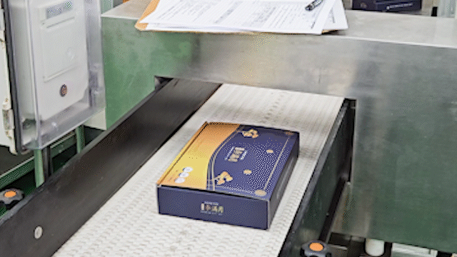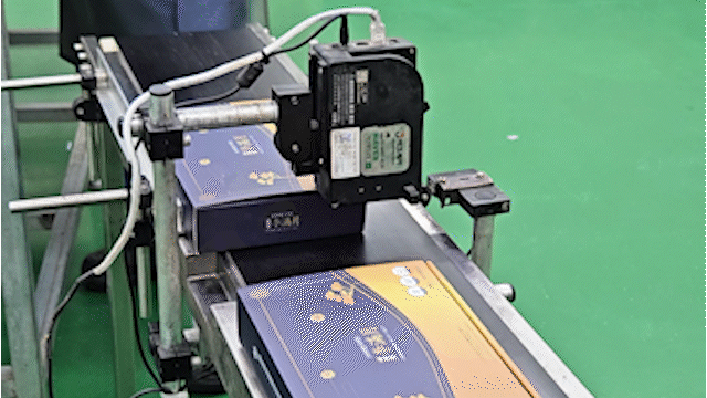 포장이 완료되면 컨베이어 벨트를 통해 이동하며 제품명과 소비기한을 찍고