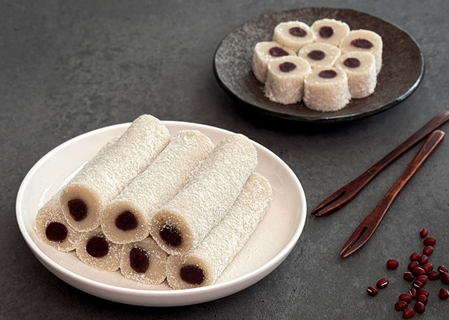 식감은 아주 쭉쭉 늘어지는 느낌은 아니고 적당히 탄력 있으면서 쫀득하다. 안에 앙금도 있고 떡 두께도 얇은 편은 아니라 크게 자르면 입안을 많이 채운다. 평소에 음식을 좀 작게 잘라 드신다면 이 돌돌떡도 작게 자르는 것을 추천드린다.