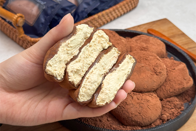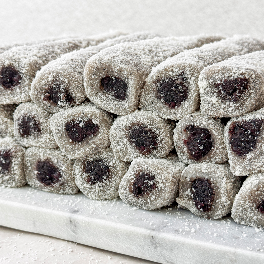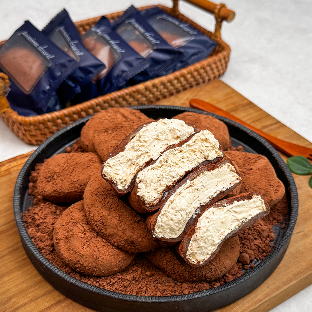카스테라 생크림 찹쌀떡은 쫀득한 찹쌀떡 안에 하얀 생크림을 넣고 겉에는 카스테라 빵가루를 뿌렸다. 티라미수는 초코 생크림에 카카오 파우더를 뿌려 만든다.