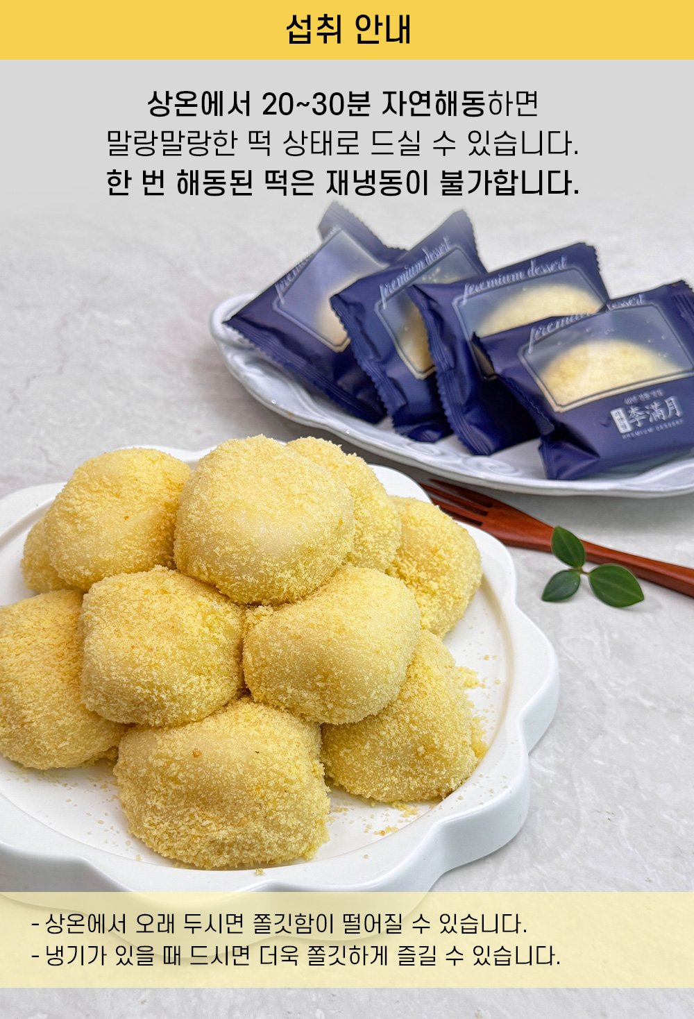 가운데가 크림으로 채워져있어 해동이 빠른 편이다. 상온에 꺼내놓고 15분에서 20분 정도면 먹을 수 있을 정도로 해동된다.