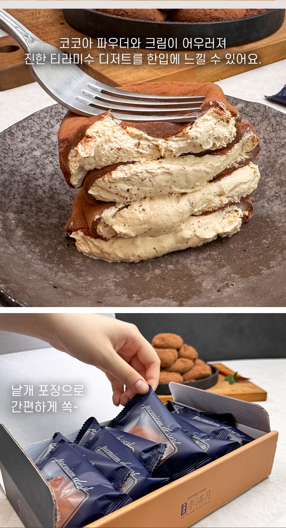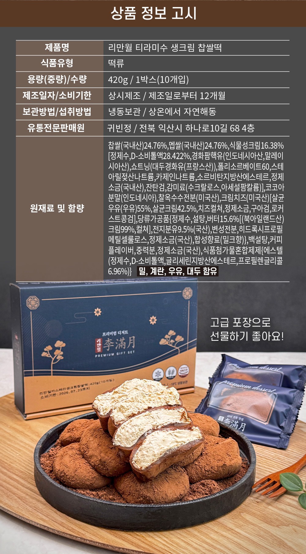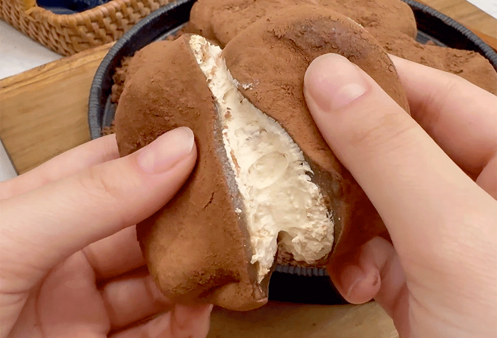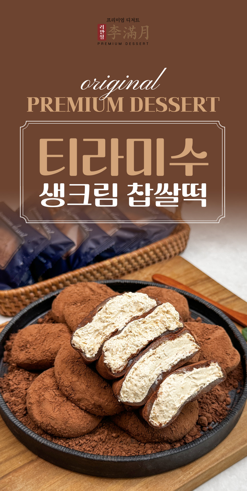 카스테라 생크림 찹쌀떡은 쫀득한 찹쌀떡 안에 하얀 생크림을 넣고 겉에는 카스테라 빵가루를 뿌렸다. 티라미수는 초코 생크림에 카카오 파우더를 뿌려 만든다.