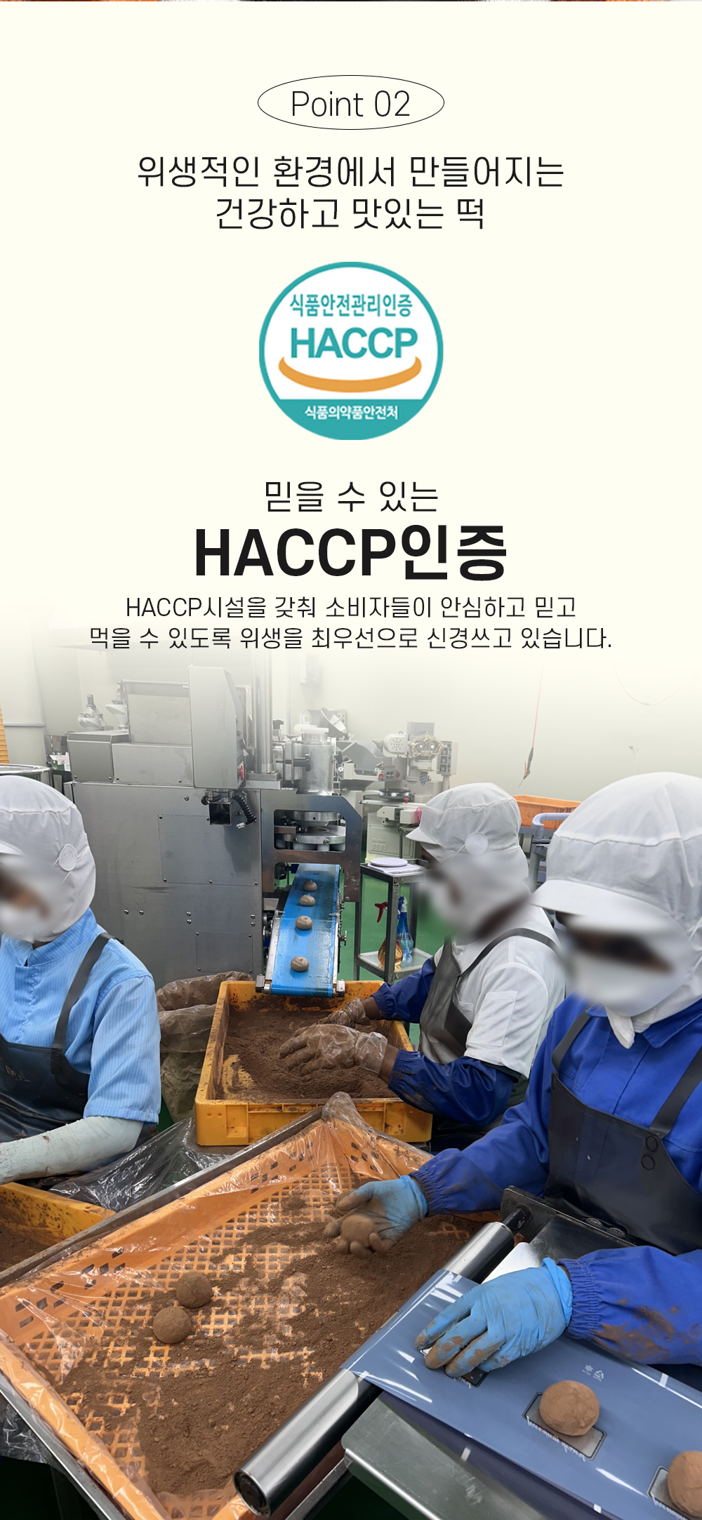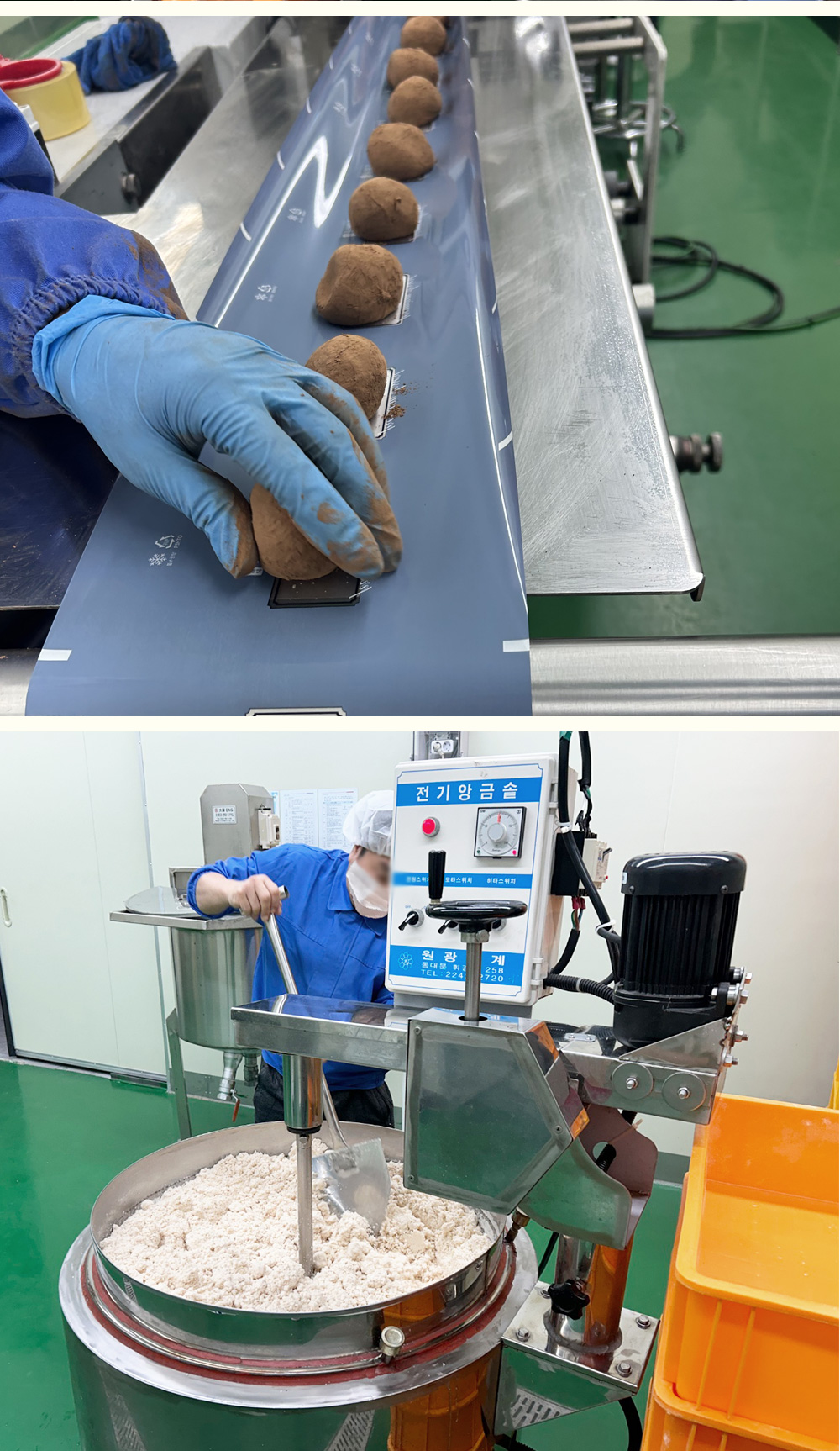 기계를 이용해 일정한 양과 모양 떡을 뽑는데 나올 때마다 무게를 재 간혹 무게가 좀 부족하게 나오거나 하는 것들은 다시 작업을 진행한다.