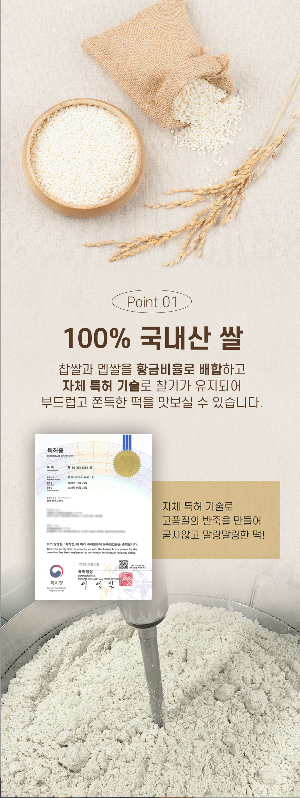 그렇게 애써 만든 쌀가루로 좋은 떡을 만들기 위해 직접 반죽기를 개발해 특허까지 낸 기술력도 있다.