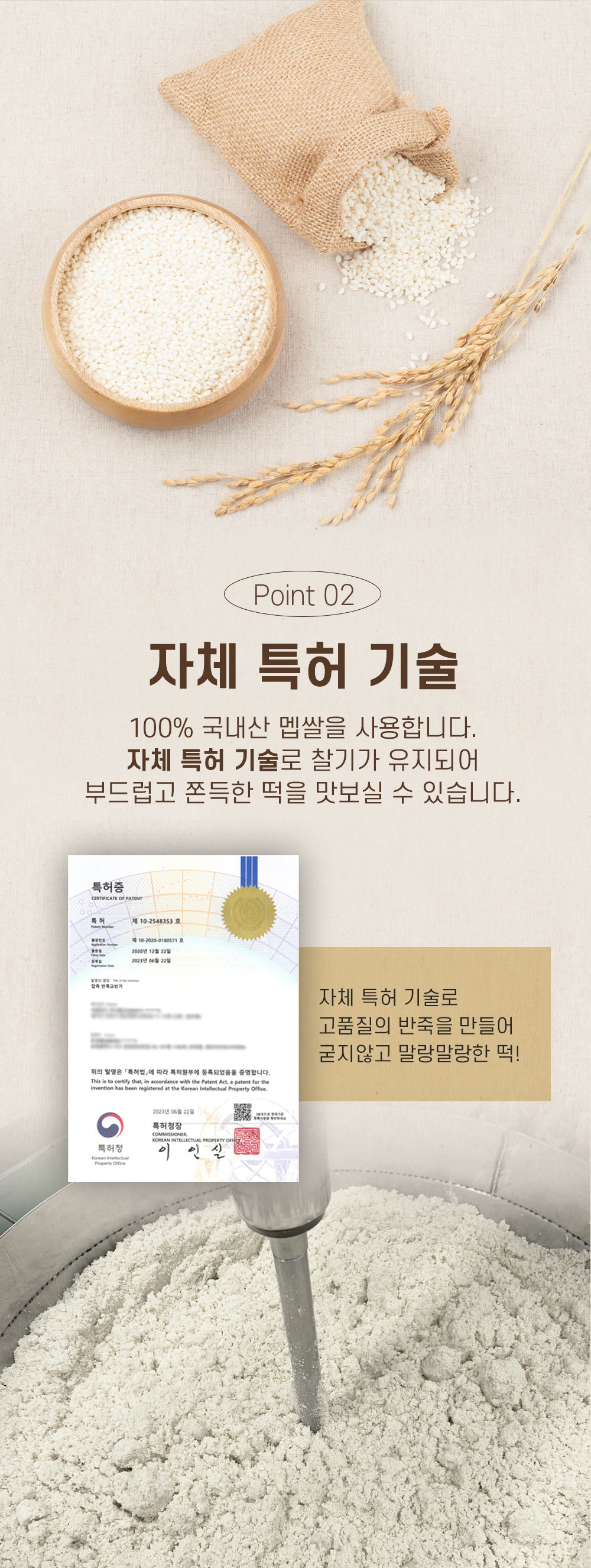 그렇게 애써 만든 쌀가루로 좋은 떡을 만들기 위해 직접 반죽기를 개발해 특허까지 낸 기술력도 있다.