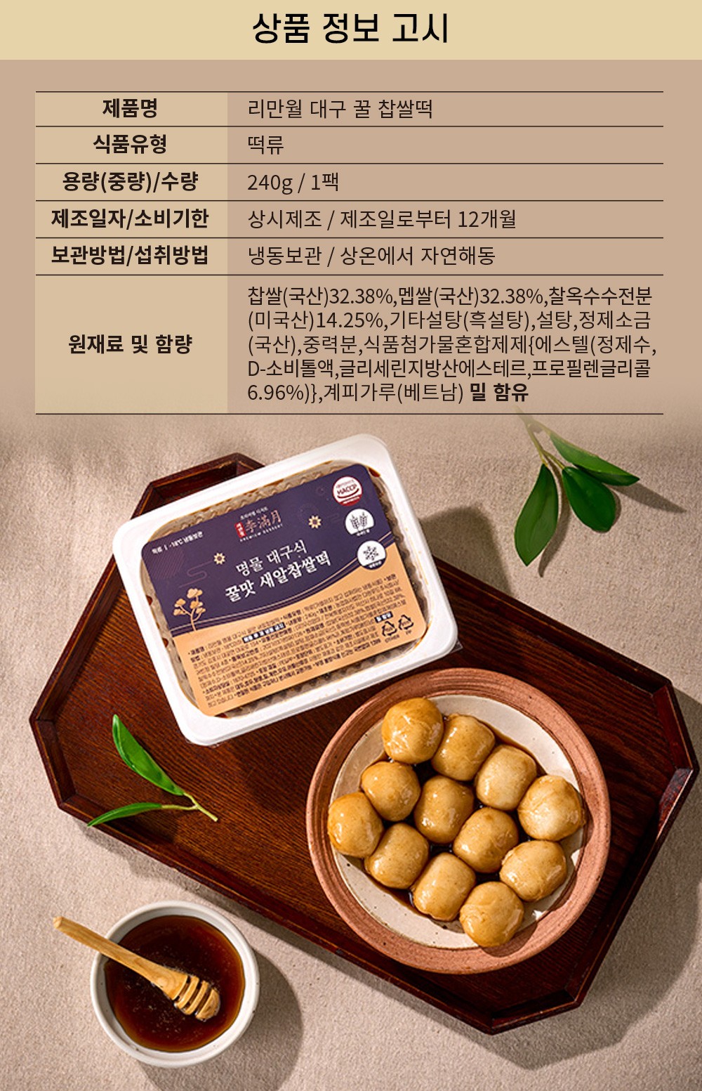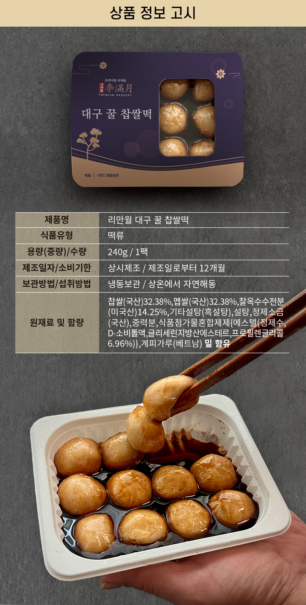 다른 제품들과 패키지가 매우 다른 이 제품은 아는 사람들은 안다는 대구 꿀떡이다.