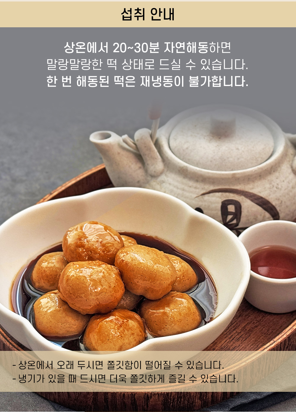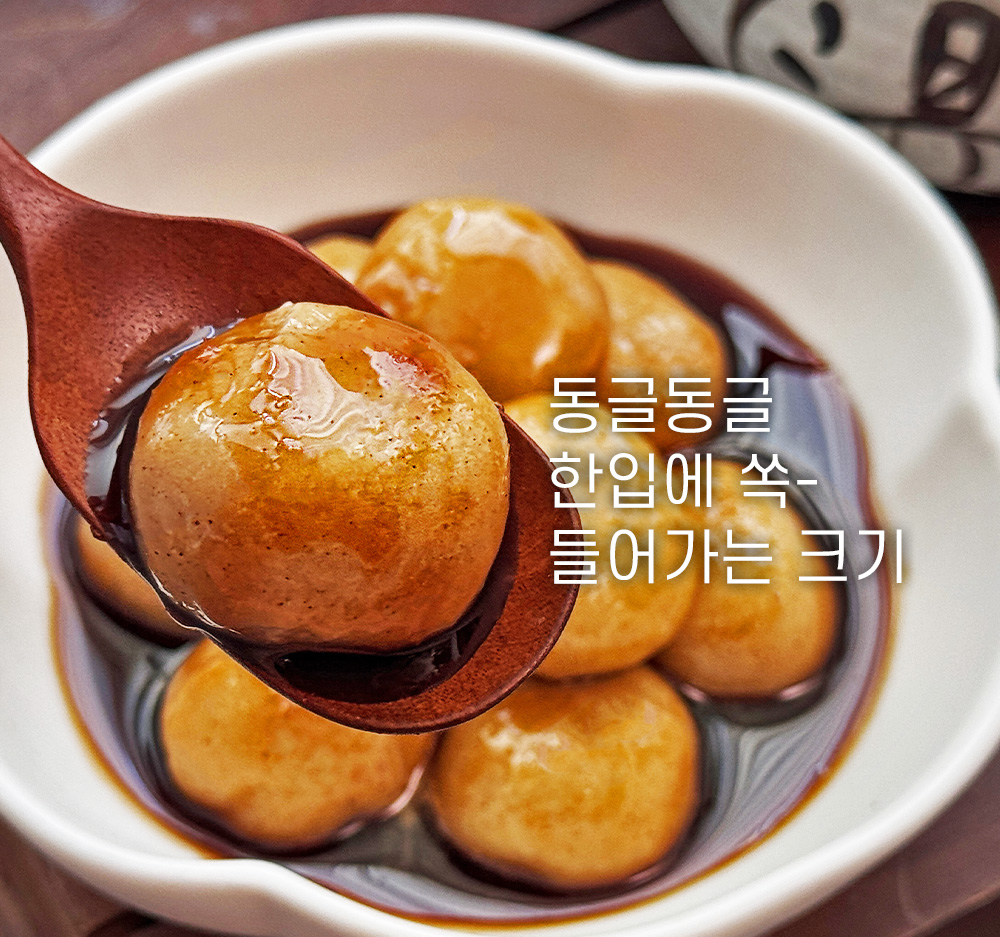 떡은 찹쌀떡이기 때문에 일반적인 꿀떡보다 더 쫀득한 식감을 가지고 있다.