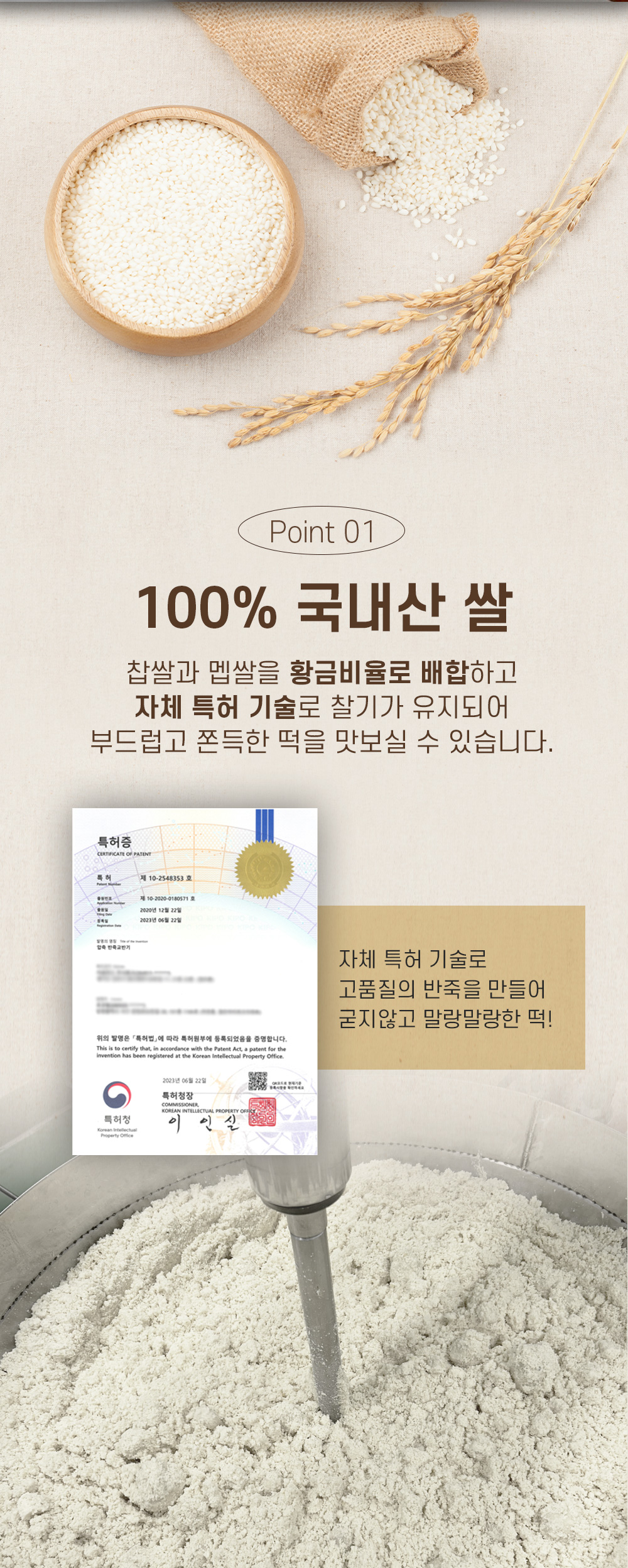그렇게 애써 만든 쌀가루로 좋은 떡을 만들기 위해 직접 반죽기를 개발해 특허까지 낸 기술력도 있다.