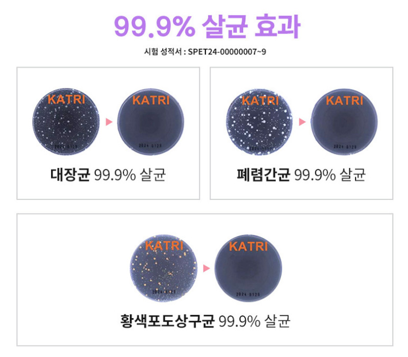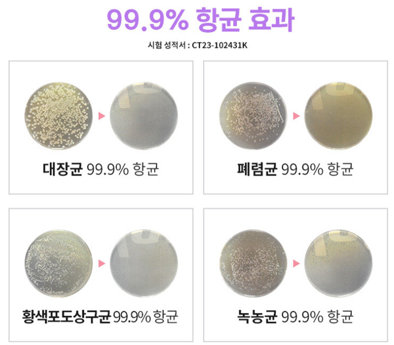 (콘에어 스팀다리미로 1분 동안 스팀 사용 시 대장균, 폐렴균, 황색 포도상 구균, 녹농균 감소 확인)